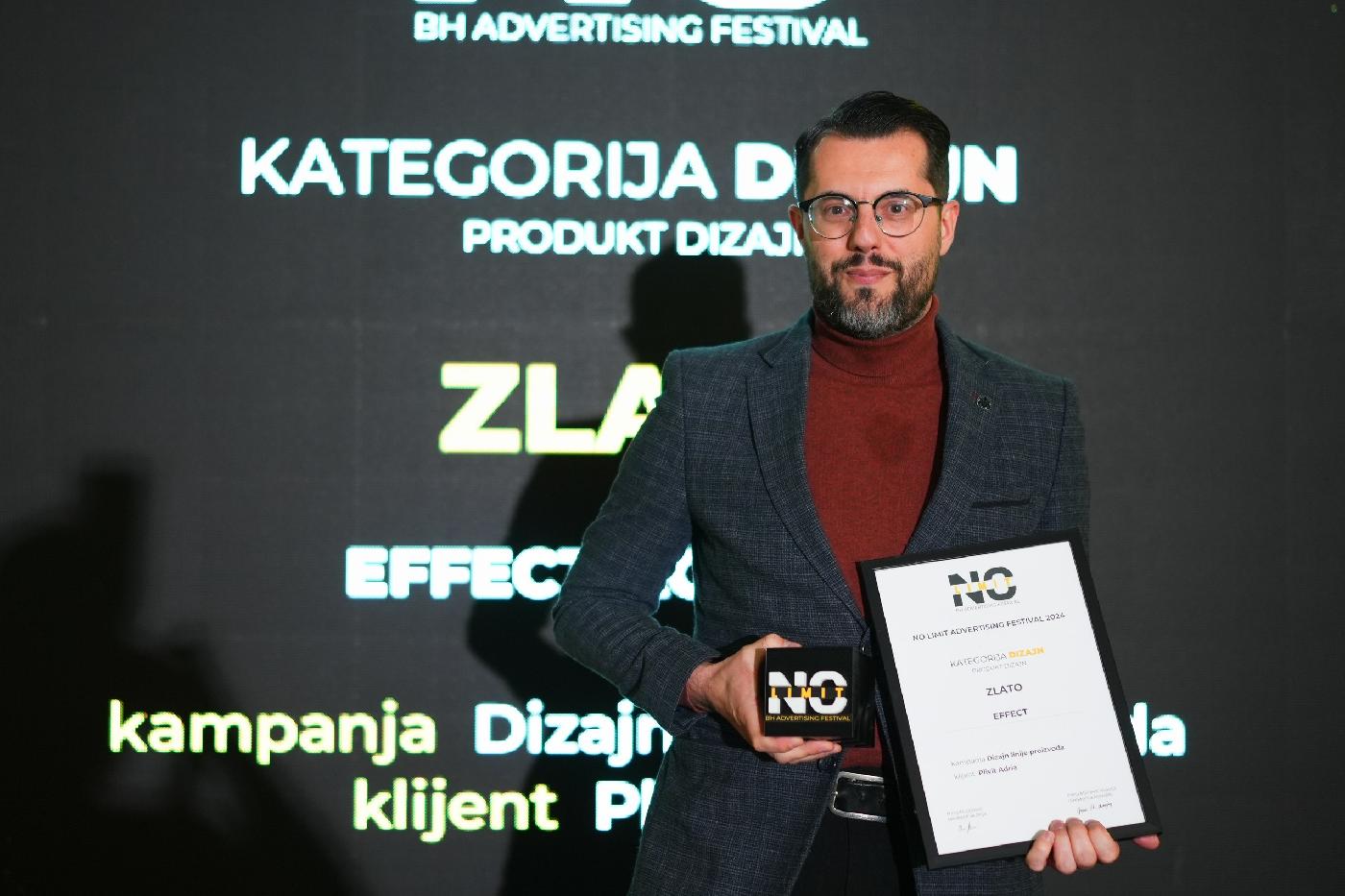 Na ovogodišnjem No Limit Advertising Festivalu, najprestižnijem takmičenju u kreativnosti u Bosni i Hercegovini, bihaćka agencija Effect ostvarila je izuzetan uspjeh osvojivši jednu zlatnu i jednu srebrenu nagradu. Festival okuplja najbolje agencije i oglašivače iz zemlje, prepoznajući i nagrađujući najoriginalnije ideje koje pomiču granice kreativnosti, bez obzira na medij u kojem su realizirane.